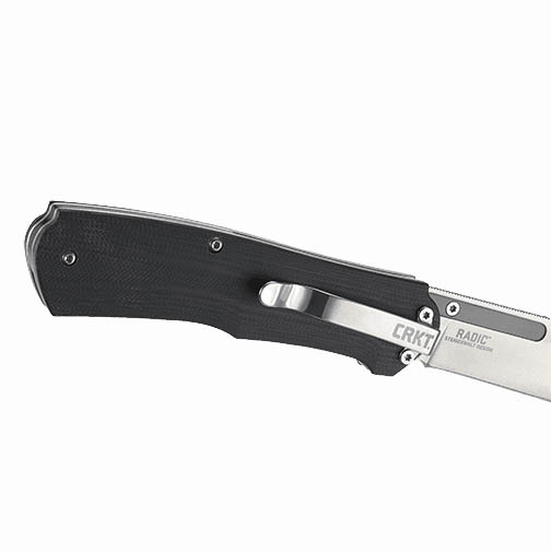 The CRKT 6040 Radic Folder Knife features an eye catching modified Sheepsfoot blade with a satin finish, and a tough G-10 handle. One push on the blade’s prominent thumb stud, and you’ll be sure it’s a showpiece. Manually open the blade 30 degrees, and the OutBurst assisted mechanism jumps to life, completing the rotation until it’s caught by the locking liner and secured in place. Extended jimping on the backstrap finishes the sleek look.