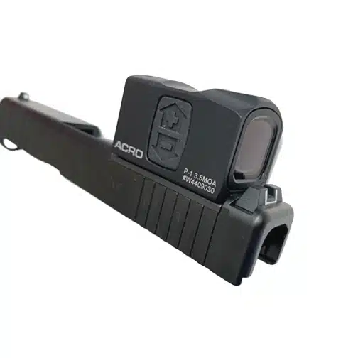 The Forward Control Design Glock Optic Plate – ACRO Footprint is a GLOCK MOS Adapter Set 01 compatible plate for mounting Aimpoint’s ACRO P1 and P2 and Steiner MPS on GLOCK Gen 4 and Gen 5, and the new CA Gen 3 MOS slides, G17, G19, G20, G21, G22, G23, G26, G34, G40, G45, G47, G49, G34, G35, G41 (width 25mm/1 inch.), and G40.