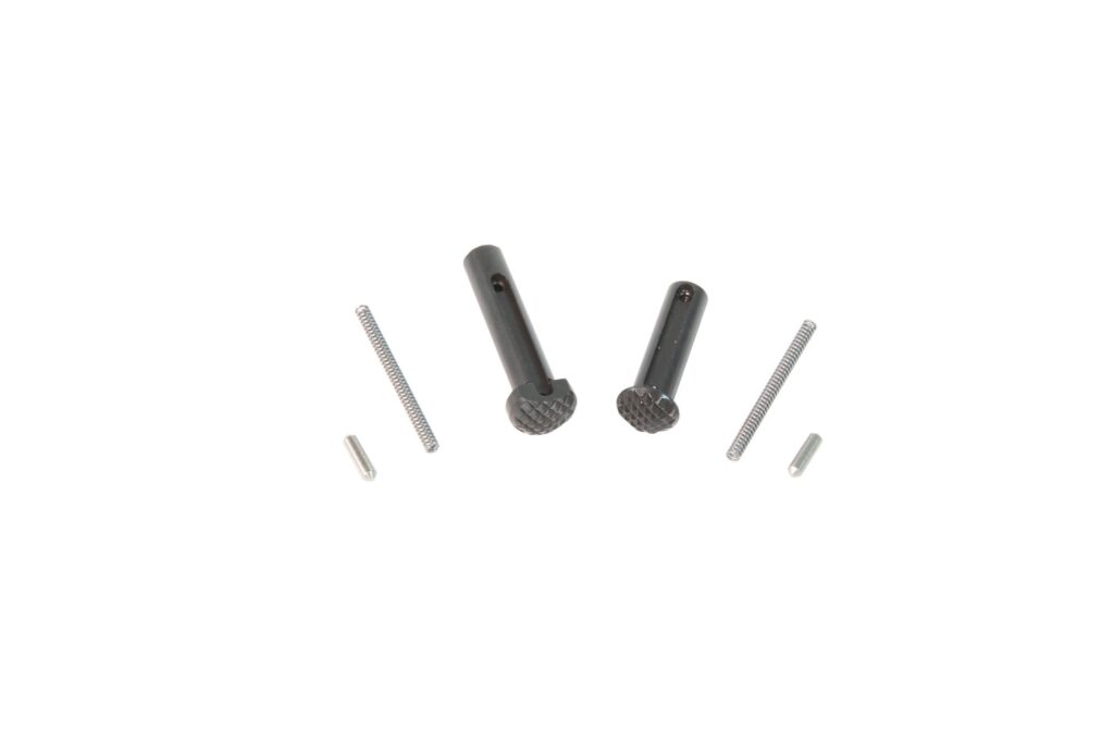 The Ultra Duty Checkered Takedown and Pivot Pins are precision machined out of stainless steel for its longevity and anti rusting properties. They feature a texture matching their Maritime Bolt Catch to complete the high end look of your carbine. Includes high quality take down detents and springs.