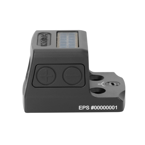 The Holosun EPS Green Dot is a compact enclosed pistol sight that is designed for a full sized handgun. The EPS’s enclosed housing gives it extra durability and keeps dust, debris and moisture from obscuring the dot like most open emitter optics. This dot features an aluminum housing and the lowest deck height, facilitating use with standard height iron sights on many pistol models. It has up to 50,000 hours of battery life, Shake Awake technology and Solar Failsafe.