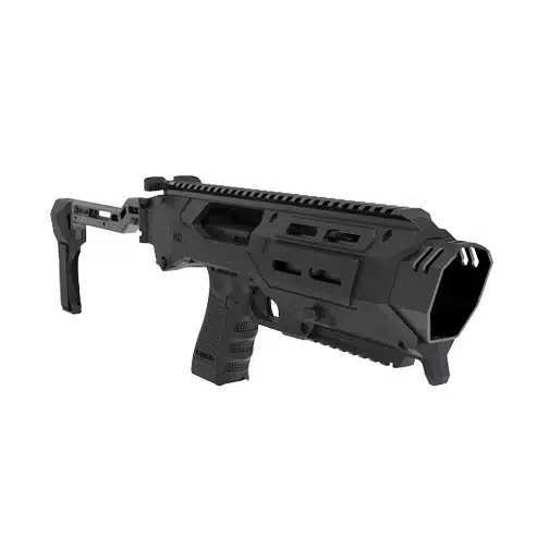 Crafted with aircraft-grade aluminum in key structural areas while maintaining a lightweight polymer price, the Meta Tactical MX-1 balances strength and portability. Its advanced AR-style charging system ensures smooth operation, while the foldable stock or stabilizer makes it easy to transport and deploy. The patented tool-free locking system allows for quick and secure handgun insertion, maximizing efficiency in any scenario.