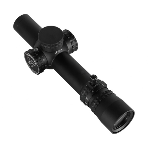 The 0.2MRAD (0.7MOA) center dot provides a precise aiming point when at high magnification. A 1MRAD resolution aiming grid allows for simultaneous holds (elevation and wind) to 10MRAD of elevation. The line labels are placed on both the left and right for fast acquisition and are located to the outside for a clear view of the target within the grid. The unobstructed view of the target, daylight visible illumination, and intuitive labeling of the FC-DMx provide the user with increased capability for both close and far targets.