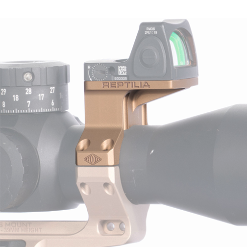The Reptilia 35mm ROF-90 is a drop in upgrade for the Reptilia AUS mount or Geissele Super Precision mounts. The ROF-90 adds a mounting point at 90º for a Trijicon RMR to provide for quick transition to a non-magnified optic for close range target engagement. Additionally, the RMR can be zeroed for use with the subsonic cartridges such as 300 AAC Blackout, while allocating the magnified optic for use with super-sonic ammunition.Each ROF model is designed to minimize each optic’s distance from the host scopes centerline, while ensuring enough clearance that the sight picture isn’t obscured.