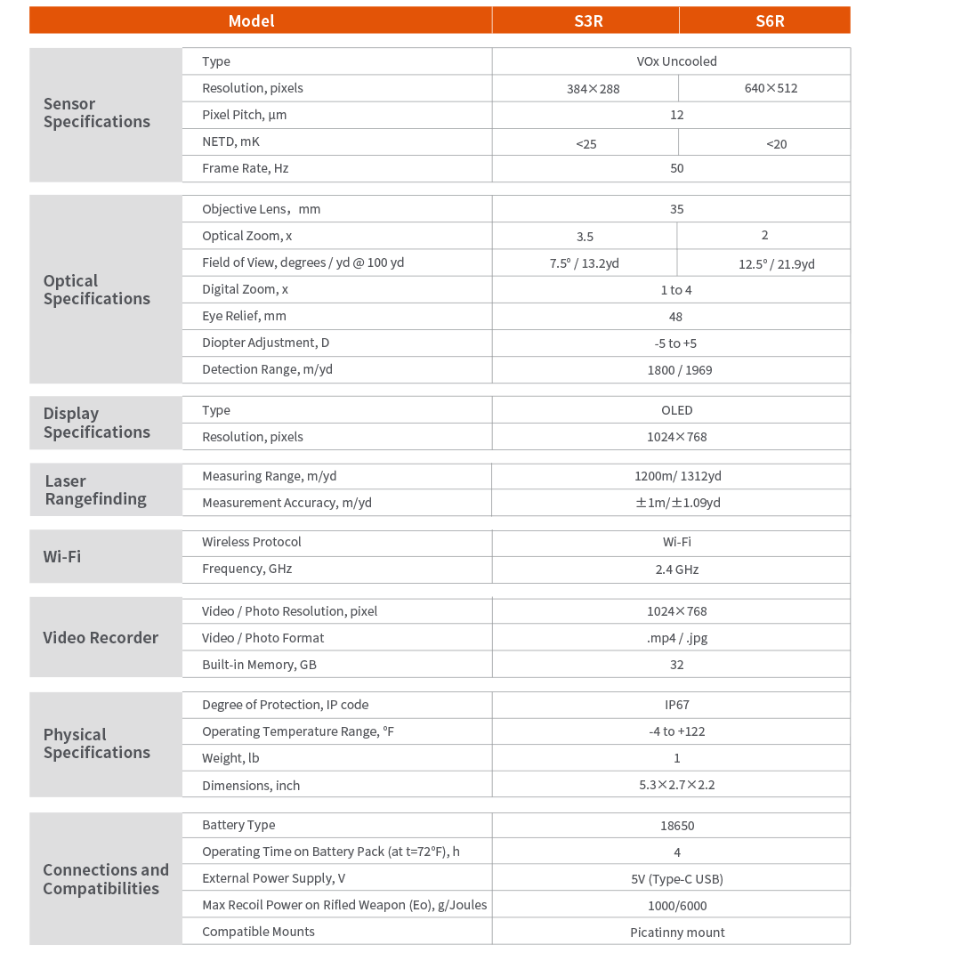 Built for mobility, the RIX Storm S6R Thermal scope is an ultra-light—S3R and S6R weigh just 1lb, so you can use them handheld without wearing out your arm. Every unit includes a free QD mount for quick and easy rifle setup.