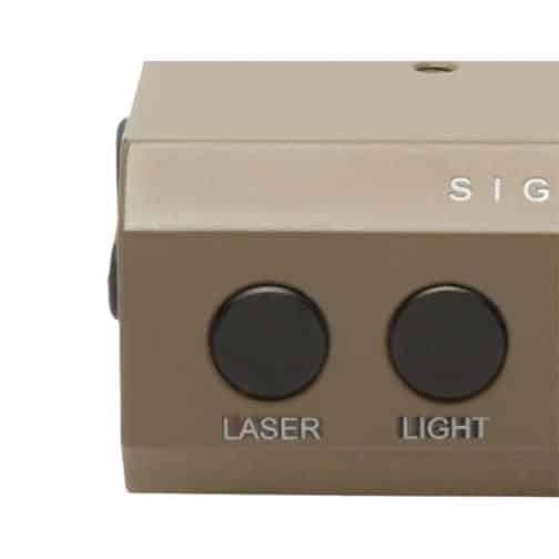 The Sightmark LoPro Flashlight is a tactical Light with a Green Laser Sight and features a Dark Earth finish. The Sightmark LoPro Combo Flashlight and Green Laser Sight has an innovative, low profile design, that allows users to mount it in the front of a scope on a Picatinny or Weaver rail without blocking the field of view. The Sightmark LoPro Combo Flashlight and Green Laser Sight’s dark earth shade offers more than just customization; it’s also a strong proponent of concealment.