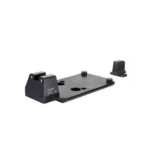 The Trijicon Dual Defense Kit RMR combines the legendary RMR, in black or FDE, and the Suppressor/Optic Height Sight Set into one, easy-to-use kit. This new kit adds speed and precision to your self-defense, law enforcement, military, competition, or target pistol. The Suppressor/Optic Height night sights are engineered to the optimal height so that the iron sight can be seen through the optic lens. Having co-witnessed iron sights helps you quickly acquire the red dot, and if necessary, provides a back up aiming solution.