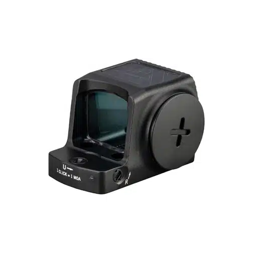 The Vortex Defender-ST Enclosed Solar Micro Red Dot multi-reticle offers 3 reticle options and 12 brightness settings (10 daylight, 2 night-vision) to quickly adapt to diverse shooting situations.
