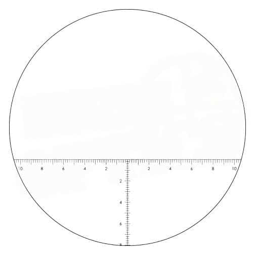Hashmarked ranging reticle using MRAD-based sub tension lines for ranging, holdover, and windage corrections. Secondary ranging references facilitate rapid range estimating.