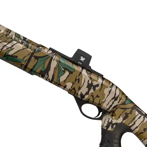 Designed specifically for hunting, it’s an enclosed, low-profile red dot that boasts the lowest mount right out of the box. No plates. No rails. No stacking tolerances. It delivers tight cheek weld that lends critical advantages to shotgun shooters, plus reticle adjustability, excellent field of view, and environmental resilience against rain, dust, and snow.