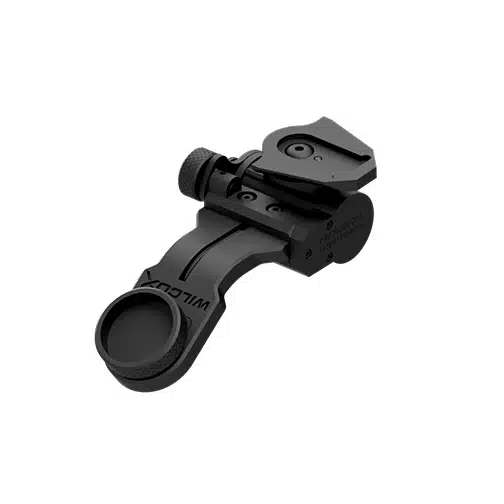 The Wilcox AN/PVS-14 Arm w/ NVG Interface Shoe was designed to provide a durable connection for mounting an AN/PVS-14 goggle to a Wilcox Combat Helmet Interface Mount. The Wilcox AN/PVS-14 Arm w/ NVG Interface Shoe can be easily mounted and dismounted from the AN/PVS-14 goggle by means of a thumb screw, and allows the operator to select the height and angle for comfort with the ability to make fine adjustments to the arm to customize the position of the Night Vision Goggle for proper eye position and relief.